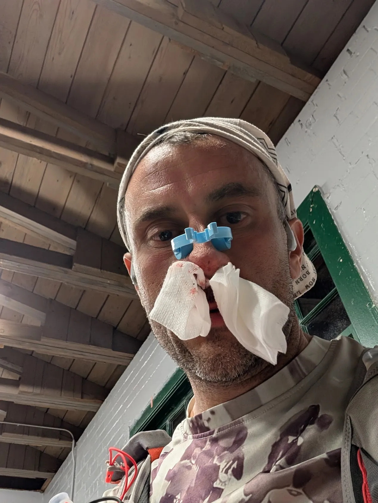 As the second night began, I got a nosebleed that wouldn’t clot. It started 20 minutes before the Tuthill aid station and lasted hours. I felt I lost a lot of blood, I was worried I could faint, Ronnie needed me for navigation. We rushed uphill. I asked Ronnie to stay close as I pinched my nose to stop it from draining into my throat. Ronnie, though exhausted, knew it was a mini-emergency. He even asked if he should blow the emergency whistle. Low platelets and iron—which I’ve since been addressing—were likely factors.