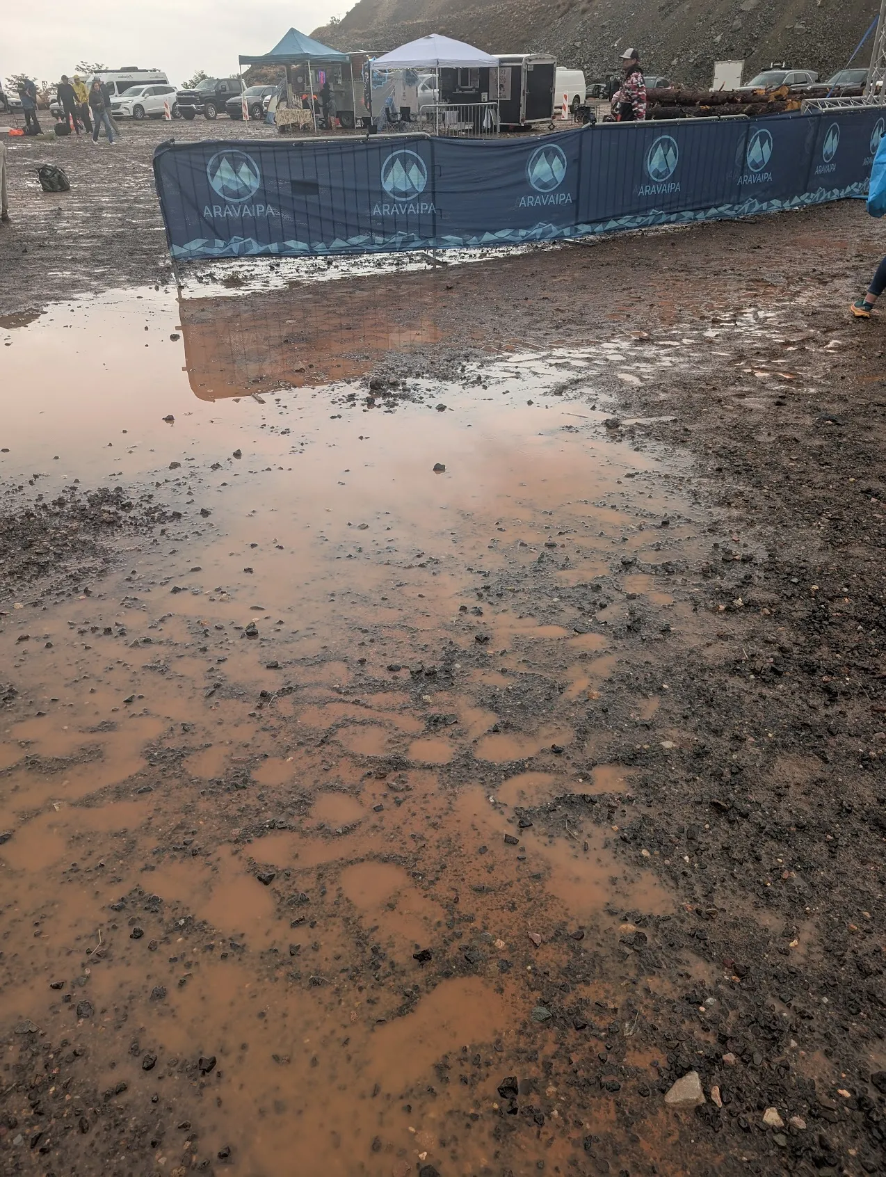 Around 12.5km, we hit a water crossing. We had planned to change into water shoes to protect our foot tape, but Ronnie got a soaker just before. With his feet already wet, we barreled through. The current was strong but safe. It felt good not to stop, but the tape took a hit. At the next aid station, I re-taped what I could. We each grabbed two meat tacos and scarfed them down.